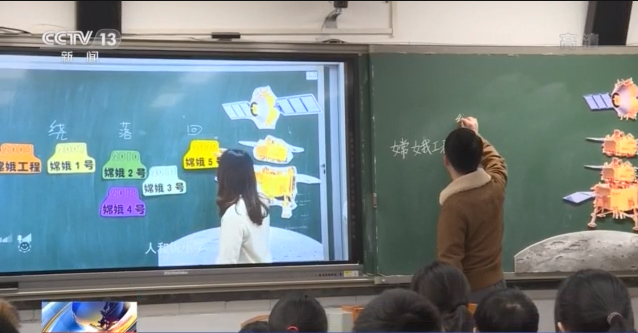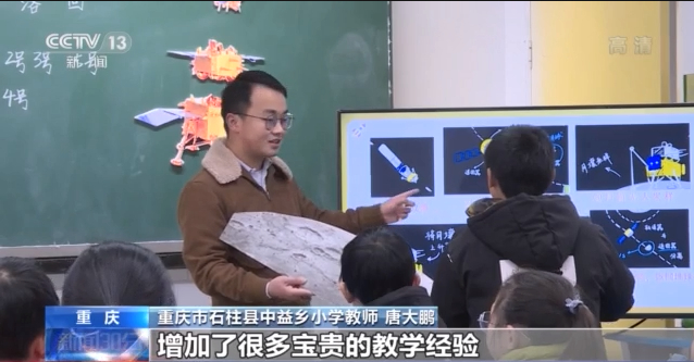這是重慶市石柱縣中益鄉(xiāng)小學(xué)六年級的一堂科學(xué)課,重慶市人和街小學(xué)特級教師陳妤,和中益鄉(xiāng)小學(xué)的95后教師唐大鵬隔空聯(lián)手,帶孩子們認(rèn)識中國的探月之路。這也是孩子們最喜歡的課程之一。