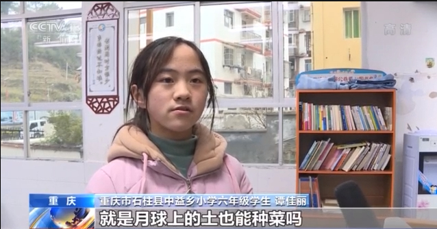 重慶市石柱縣中益鄉(xiāng)小學(xué)六年級學(xué)生 譚佳麗:我一直有個問題,就是月球上的土也能種菜嗎?我在今天的課上找到了答案。