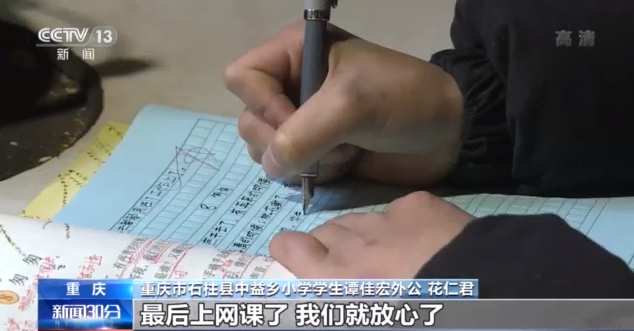 重慶市石柱縣中益鄉(xiāng)小學(xué)學(xué)生譚佳宏外公 花仁君:我們當(dāng)外公外婆的說不來也教不來,他媽在外打工,后來開始上網(wǎng)課后,我們也就放心了。