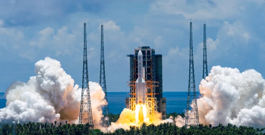 2020年7月23日,長征五號遙四運載火箭在中國文昌航天發(fā)射場點火升空,實施我國首次火星探測任務(天問一號任務)。新華社記者 才揚 攝
