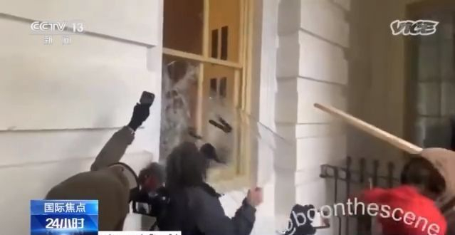 美國有線電視新聞網(wǎng)主持人:你們即將看到的,是一群暴徒從國會(huì)大廈西側(cè)的入口強(qiáng)行進(jìn)入。