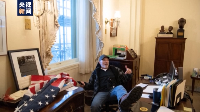 躺在佩洛西辦公椅上的男子名叫理查德·巴內(nèi)特,此人為阿肯色州一個(gè)支持槍支權(quán)利的極右翼組織領(lǐng)導(dǎo)人,曾發(fā)帖反對(duì)加強(qiáng)槍支管制。他還參加過“匿名者Q”組織的活動(dòng)。