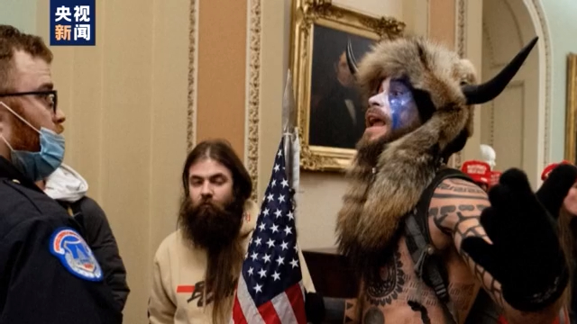 打扮成“野蠻人”形象的男子杰克·安杰利也是“匿名者Q”組織的成員,有不少追隨者。“匿名者Q”是一個(gè)美國極右翼陰謀論組織。