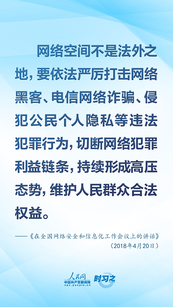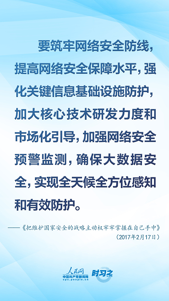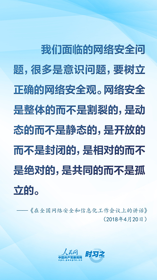 黨的十八大以來(lái),以習(xí)近平同志為核心的黨中央從進(jìn)行具有許多新的歷史特點(diǎn)的偉大斗爭(zhēng)出發(fā),重視互聯(lián)網(wǎng)、發(fā)展互聯(lián)網(wǎng)、治理互聯(lián)網(wǎng),統(tǒng)籌協(xié)調(diào)涉及政治、經(jīng)濟(jì)、文化、社會(huì)、軍事等領(lǐng)域網(wǎng)絡(luò)安全和信息化重大問(wèn)題,作出一系列重大決策、實(shí)施一系列重大舉措,推動(dòng)我國(guó)網(wǎng)信事業(yè)取得歷史性成就,走出一條中國(guó)特色治網(wǎng)之道。人民網(wǎng)·中國(guó)共產(chǎn)黨新聞網(wǎng)“時(shí)習(xí)之”欄目擷取了《習(xí)近平關(guān)于網(wǎng)絡(luò)強(qiáng)國(guó)論述摘編》中有關(guān)“維護(hù)國(guó)家網(wǎng)絡(luò)安全”的10句金句,以饗讀者。