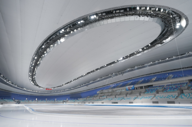 新建的國(guó)家速滑館,是北京主賽區(qū)標(biāo)志性場(chǎng)館,也是唯一新建的冰上競(jìng)賽場(chǎng)館,被形象地稱為“冰絲帶”。國(guó)家速滑館利用2008年奧運(yùn)會(huì)曲棍球和射箭的臨時(shí)場(chǎng)地進(jìn)行建設(shè),擁有亞洲最大的全冰面設(shè)計(jì),冰面面積達(dá)1.2萬(wàn)平方米。