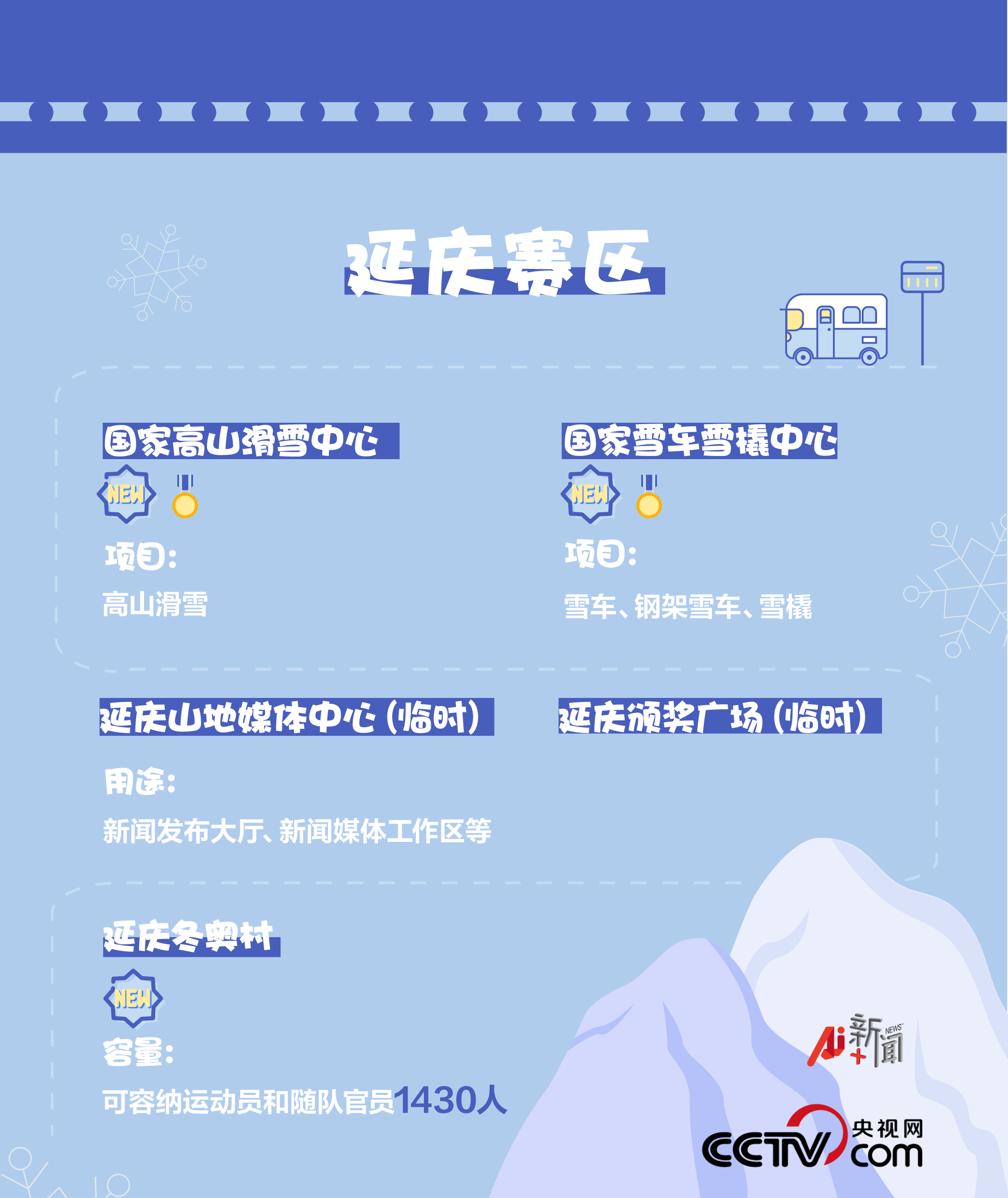 延慶賽區(qū)位于北京中心城的西北方向的延慶區(qū),共有5個(gè)競(jìng)賽和非競(jìng)賽場(chǎng)館,其中3個(gè)為新建場(chǎng)館、2個(gè)為臨時(shí)場(chǎng)館,將進(jìn)行3個(gè)大項(xiàng)(高山滑雪、雪車、雪橇)、4個(gè)分項(xiàng)(高山滑雪、雪車、鋼架雪車、雪橇)、20個(gè)小項(xiàng)的比賽。