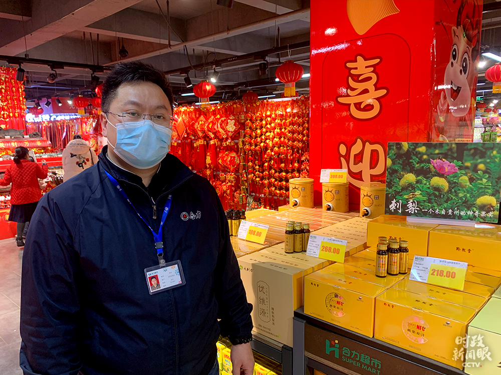 為了滿足消費(fèi)者就地過年的需求,超市主要增加了本地的特色產(chǎn)品。店長黃東告訴《時政新聞眼》,天麻、靈芝、杜仲組成的“貴州三寶”是這些天的熱銷商品。黃東是吉林人,他說自己也積極響應(yīng)號召,今年留在貴州過年。