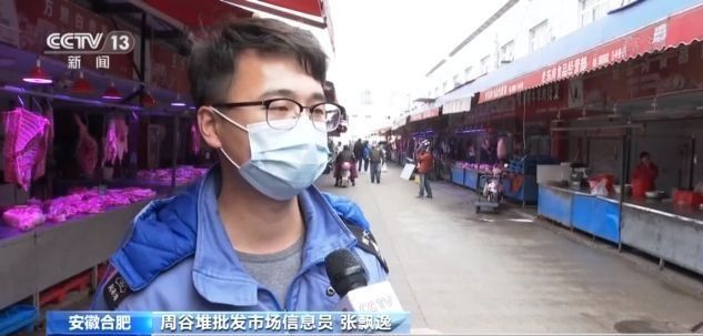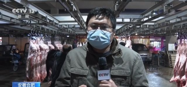 總臺央視記者 王寧:現(xiàn)在是早晨的四點半。我所在的地方是安徽省最大的農(nóng)產(chǎn)品批發(fā)市場,位于合肥市的周谷堆批發(fā)市場。您可以看到,現(xiàn)在正是這里豬肉交易最繁忙的時候。盡管室外的氣溫只有4、5度,但是這里的豬肉交易還是十分的火爆。那么為什么我們要探訪這家市場呢?是因為周谷堆市場提供了整個合肥市超過七成的農(nóng)產(chǎn)品。其中,它提供的豬肉產(chǎn)品占到了合肥市消費量的九成以上。據(jù)市場給我們提供的數(shù)字,近幾天周谷堆批發(fā)市場日豬肉交易量已超過三百噸,比一個月前已經(jīng)提高了整整四成。這充分體現(xiàn)了春節(jié)前當?shù)毓╀N兩旺的一個態(tài)勢。
