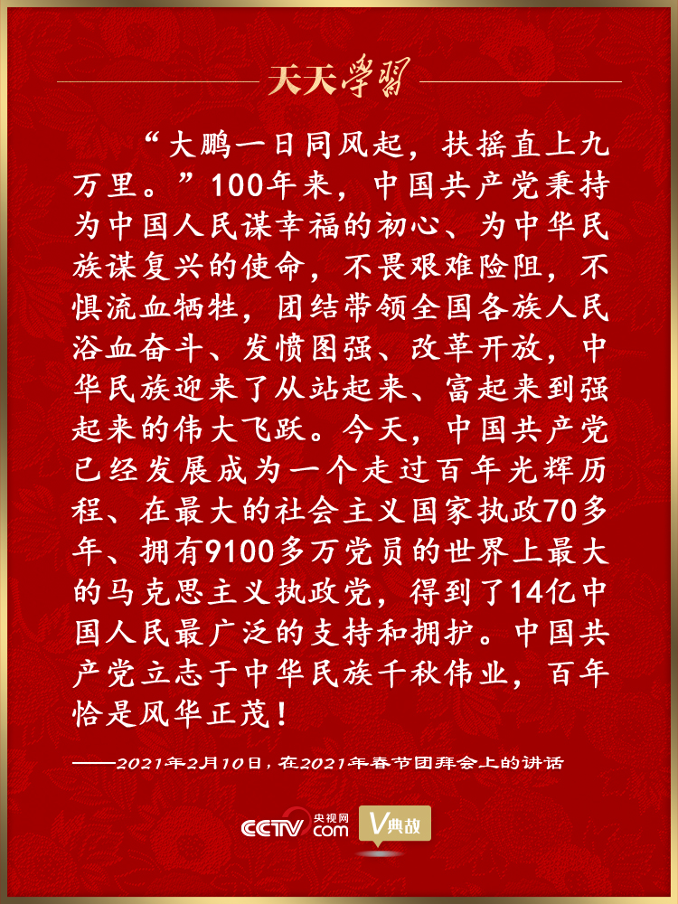 2021年是中國共產(chǎn)黨百年華誕。站在“兩個一百年”奮斗目標的歷史交匯點,全面建設(shè)社會主義現(xiàn)代化國家新征程即將開啟。實現(xiàn)第二個百年奮斗目標、實現(xiàn)中華民族偉大復(fù)興就是當代中國共產(chǎn)黨人的鯤鵬之志!皶斔畵羧Ю铩保灰覀兝^續(xù)發(fā)揚篳路藍縷、以啟山林那么一種精神,繼續(xù)保持空談?wù)`國、實干興邦那么一種警醒,繼續(xù)為中華民族偉大復(fù)興辛勤耕耘、勇往直前,就一定能在新時代創(chuàng)造新的歷史輝煌!
