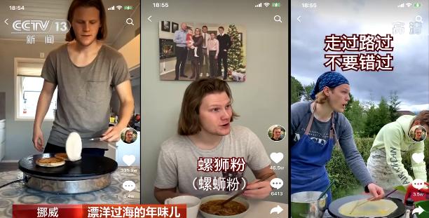 第一個要來認(rèn)識的“老外”來自遙遠(yuǎn)的挪威,他的名字叫克里斯。在克里斯制作的短視頻里,他會做餡餅、螺螄粉、煎餅,還帶著自己的家人一起品嘗中國美食。短短一年多時(shí)間里,他的短視頻作品在抖音、快手等平臺獲得超過兩千萬粉絲、上億次點(diǎn)贊。
