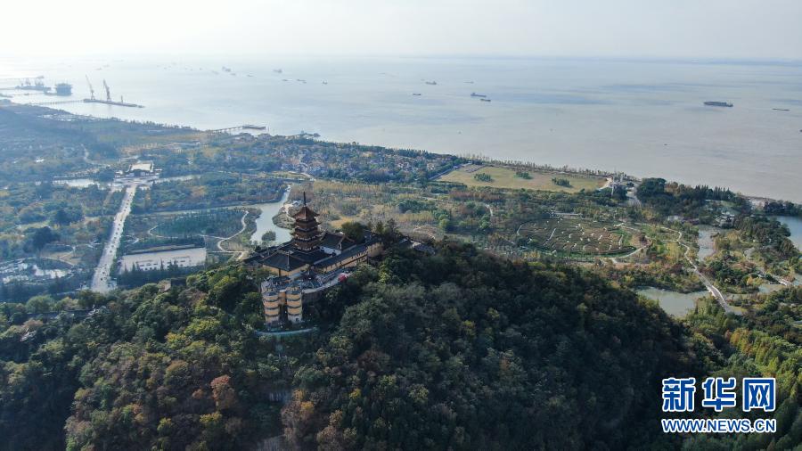 2020年11月13日拍攝的南通狼山及附近江景(無人機照片)。近年來,江蘇南通全面實施五山及沿江地區(qū)生態(tài)保護和修復工作,促進長江岸線水土保持和水源涵養(yǎng)。新華社記者 季春鵬 攝