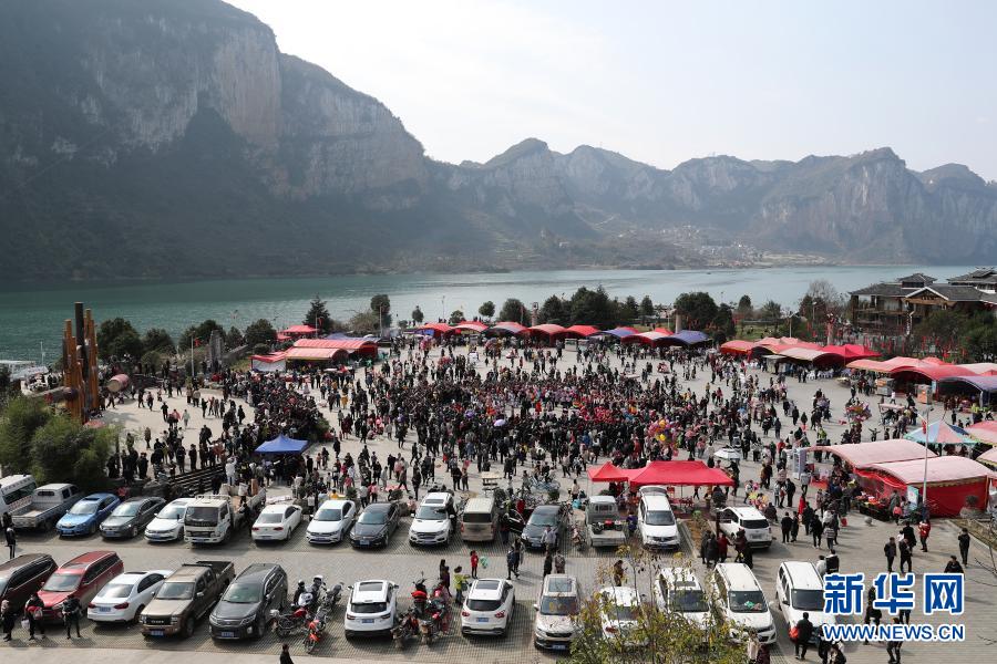 2021年2月17日,貴州省畢節(jié)市黔西縣新仁苗族鄉(xiāng)化屋村同心廣場游人如織。新華社發(fā)(史開心 攝)
