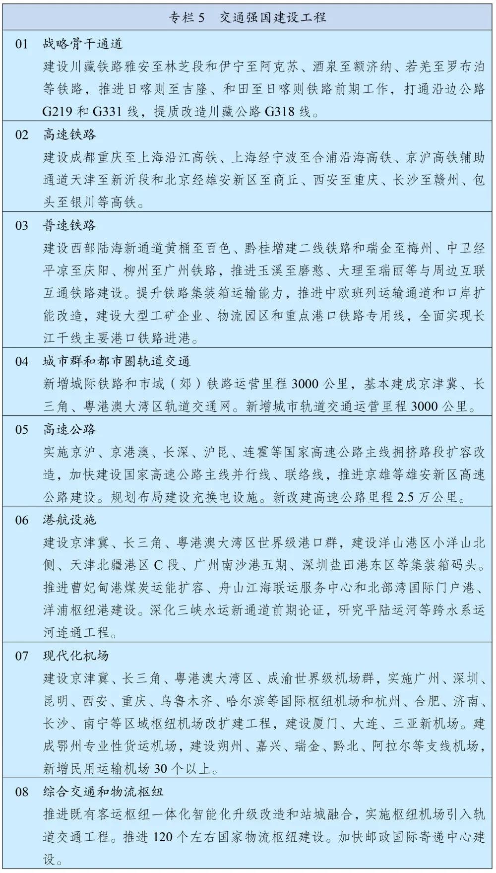 構建快速網(wǎng),基本貫通“八縱八橫”高速鐵路,提升國家高速公路網(wǎng)絡質量,加快建設世界級港口群和機場群。