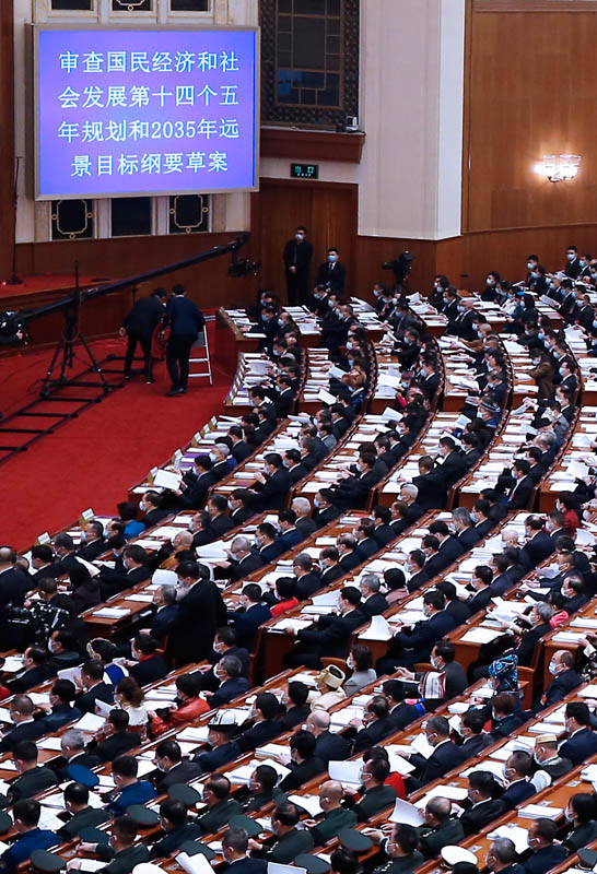 2021年3月5日,人民大會(huì)堂,十三屆全國(guó)人大四次會(huì)議開幕,根據(jù)這份建議編制、厚達(dá)142頁(yè)的“十四五”規(guī)劃和2035年遠(yuǎn)景目標(biāo)綱要草案呈現(xiàn)在代表面前,提請(qǐng)大會(huì)審查。