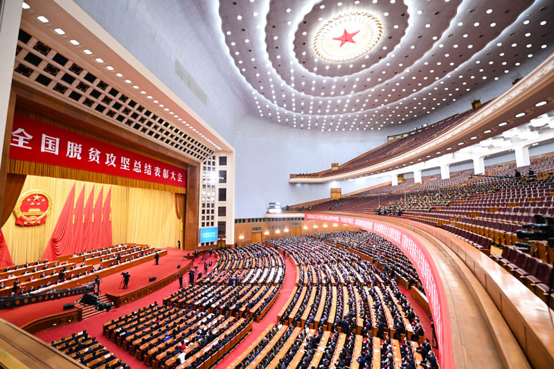 2021年2月25日,全國(guó)脫貧攻堅(jiān)總結(jié)表彰大會(huì)在北京人民大會(huì)堂隆重舉行。新華社記者 李響 攝