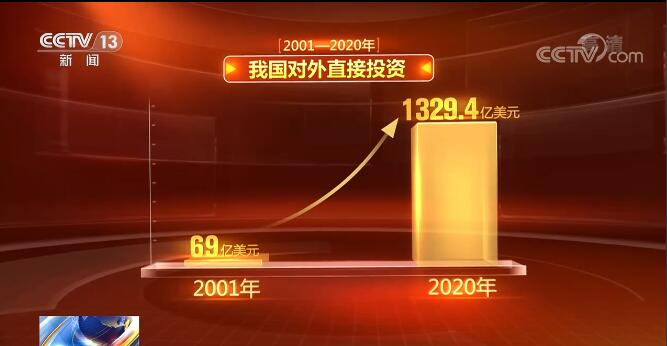 與此同時(shí),對(duì)外投資也實(shí)現(xiàn)跨越式發(fā)展。2001年,我國(guó)對(duì)外直接投資只有69億美元,而2020年達(dá)到了1329.4億美元。對(duì)外直接投資年度流量全球排名從加入世貿(mào)組織之初的第26位上升至2019年第2位。