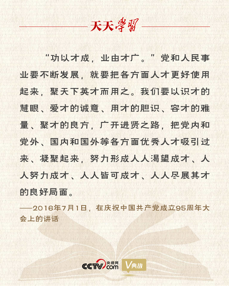 “功以才成,業(yè)由才廣。”早在河北正定工作期間,為把當(dāng)?shù)亟?jīng)濟(jì)搞上去,習(xí)近平就果敢地推出“人才九條”,面向全國招賢納士,為正定發(fā)展破局開路。黨的十八大以來,習(xí)近平總書記從執(zhí)政興國的高度,多次對(duì)人才強(qiáng)國作出重要論述,他指出:“當(dāng)今世界聚才、用才,應(yīng)該包括國際國內(nèi)兩個(gè)方面的人才,也就是擇天下英才而用之。”在黨的十九大報(bào)告中,他再次強(qiáng)調(diào)“聚天下英才而用之,加快建設(shè)人才強(qiáng)國”,號(hào)召“把黨內(nèi)和黨外、國內(nèi)和國外各方面優(yōu)秀人才集聚到黨和人民的偉大奮斗中來”。