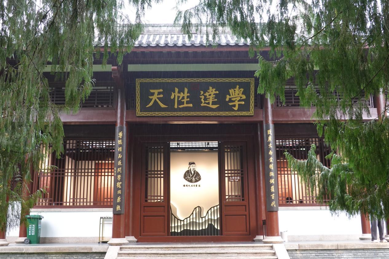 △武夷精舍內(nèi)懸掛有康熙親賜的匾額“學(xué)達(dá)性天”。(總臺(tái)央廣記者潘毅拍攝)