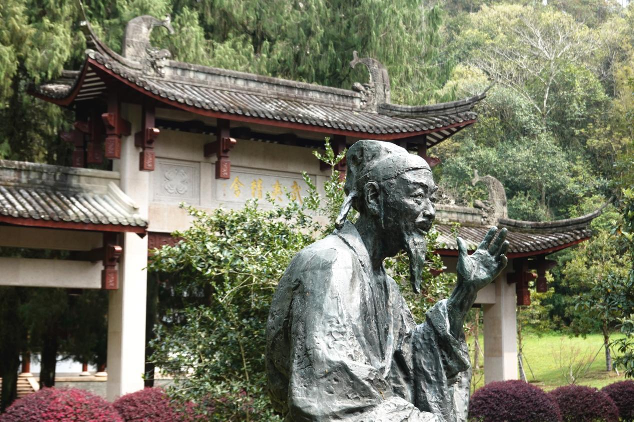 △武夷精舍門前的朱子雕像(總臺(tái)央廣記者潘毅拍攝)
