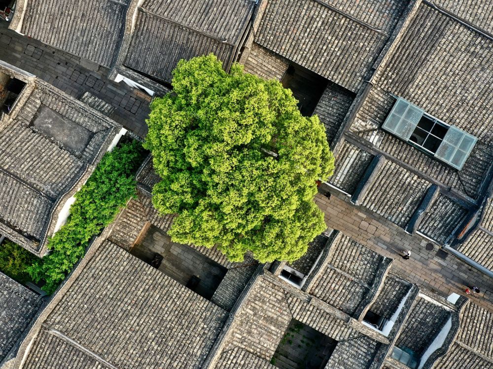 這是福州三坊七巷文化街區(qū)的古厝綠樹(2021年3月17日攝,無人機照片) 新華社記者 姜克紅 攝