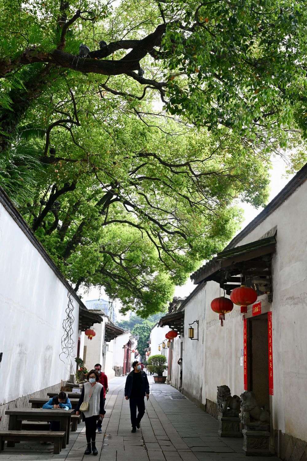 2021年3月14日,游客行走在綠樹掩映的福州三坊七巷文化街區(qū)宮巷內(nèi)。 新華社記者 姜克紅 攝