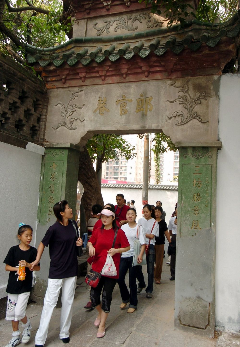 2004年10月1日,游客在福州市“三坊七巷”“郎官巷”游覽。當日,福州市開通“三坊七巷”名人故居旅游線路,裝修一新的福州市明清古建筑群“三坊七巷”首次對游客正式開放。 新華社記者 姜克紅 攝
