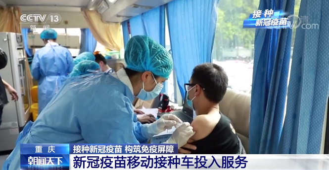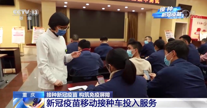 4月9日,在位于重慶璧山區(qū)的一家企業(yè)內(nèi),一輛“新冠疫苗移動(dòng)接種車(chē)”停在廣場(chǎng)上,企業(yè)員工在醫(yī)務(wù)人員的指引下有序排起長(zhǎng)隊(duì),依次進(jìn)入車(chē)內(nèi)接種。