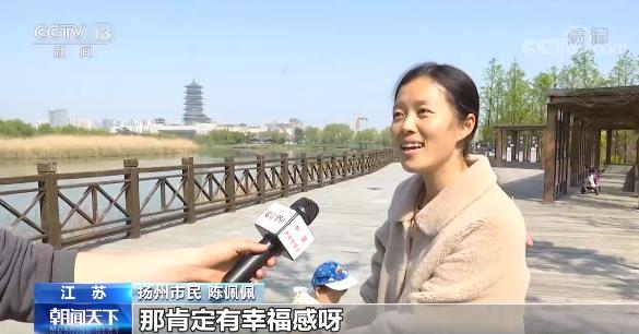 江蘇揚(yáng)州市民 陳佩佩:那肯定有幸福感呀,出門(mén)就可以逛公園,對(duì)不對(duì)。風(fēng)景比較好,然后設(shè)施也比較完善,管理的人也比較多,所以這些風(fēng)景都維持得比較好一點(diǎn)。