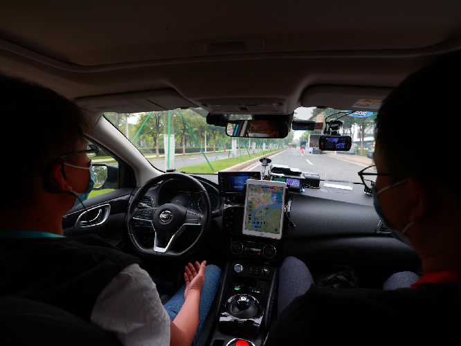 4月20日,廣州生物島文遠知行公司,工作人員正在展示該公司自主研發(fā)的無人駕駛技術。人民日報記者 張武軍攝