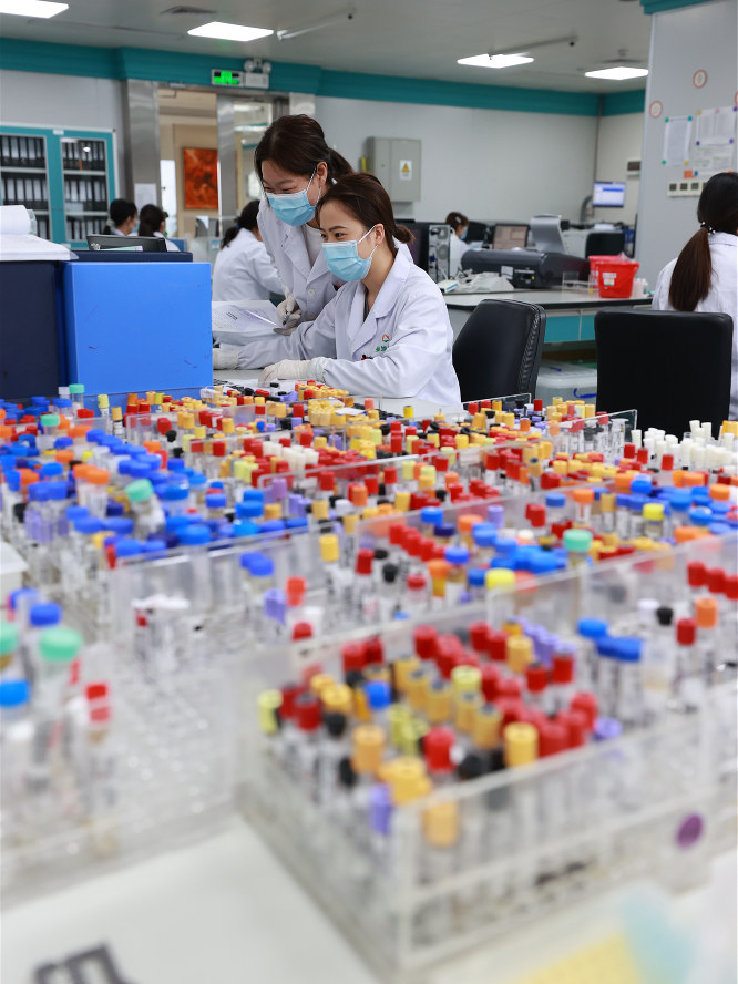 4月20日,廣州生物島金域醫(yī)學公司內(nèi),實驗人員正在工作。人民日報記者 張武軍攝
