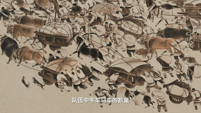 隊(duì)伍中牛車、馬車的數(shù)量雖然不多,但也都物盡其用,運(yùn)的都是最重的物資。