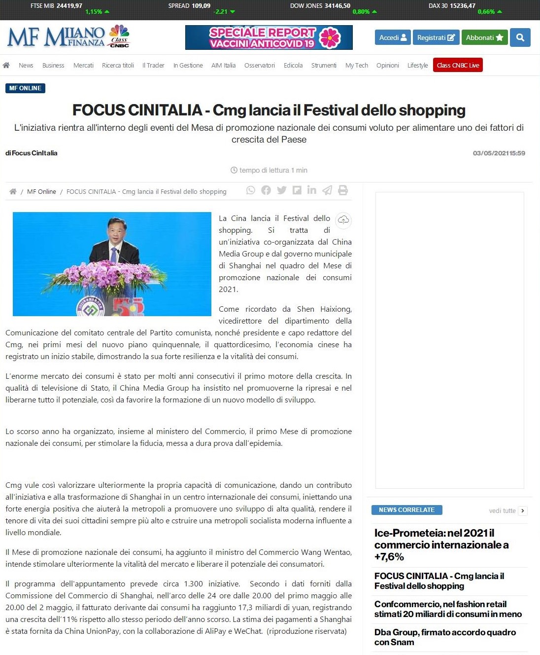活動引發(fā)海外媒體廣泛關注。截至5月4日,美國全國廣播公司CNBC財經(jīng)頻道、《歐洲時報》德文網(wǎng)、《北歐時報》網(wǎng)站、意大利《米蘭財經(jīng)報》網(wǎng)站、意大利《日報》網(wǎng)站、挪威國家廣播電視一臺(NRK 1)、日本最大的中國資訊門戶網(wǎng)站Record China、印度《每日力量報》網(wǎng)站、土耳其經(jīng)濟觀察網(wǎng)、《哈薩克斯坦實業(yè)報》網(wǎng)站、保加利亞新聞門戶網(wǎng)站“24小時”、埃及《今日消息報》、尼日利亞《領導者報》網(wǎng)站、尼羅河國際電視臺(Nile TV International)、越南國家電視臺綜合頻道(VTV1)、印尼艾爾辛達新聞網(wǎng)、柬埔寨Freshnews網(wǎng)站以及香港大公報、文匯報紛紛轉(zhuǎn)載轉(zhuǎn)引。多家媒體表示,中國經(jīng)濟在“十四五”規(guī)劃的第一個春天迎來穩(wěn)健開局,消費市場規(guī)模持續(xù)擴大成為發(fā)展動力。