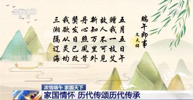 南宋末年,文天祥遭流言蜚語所誣陷,時值端午,為了表明心跡,他寫下《端午即事》一詩:“五月五日午,贈我一枝艾。故人不可見,新知萬里外。丹心照夙昔,鬢發(fā)日已改。我欲從靈均,三湘隔遼海!蔽奶煜橐栽娬阎夜,即便山河破碎、深知救國無望,他仍會以屈原作榜樣每天誦讀屈原的《離騷》,寫下“人生自古誰無死,留取丹心照汗青”的不朽詩篇。