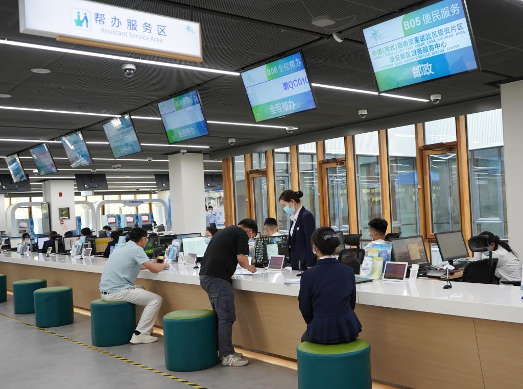 5月12日,在河北雄安新區(qū)政務(wù)服務(wù)中心幫辦服務(wù)區(qū),工作人員為居民辦理業(yè)務(wù)。新華社記者 金皓原 攝