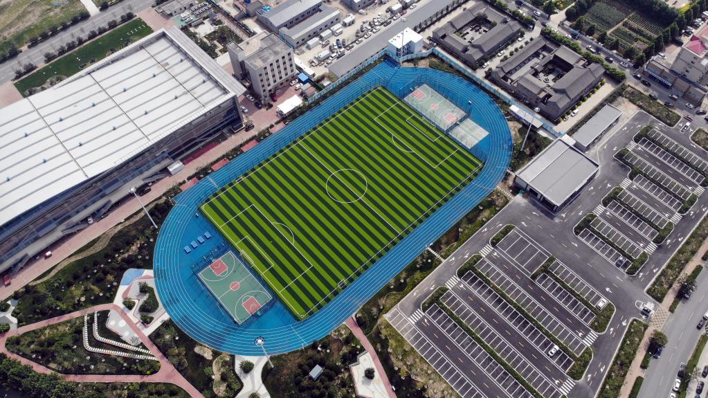這是7月9日拍攝的容城縣體育公園(無人機(jī)照片)。新華社記者 駱學(xué)峰 攝