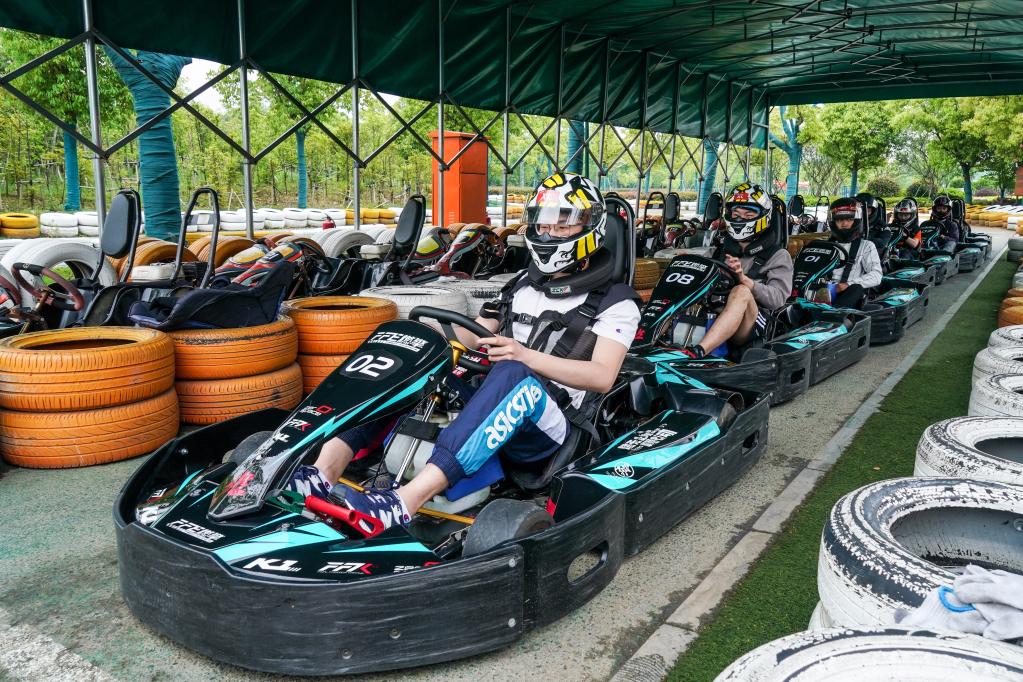 5月11日,游客在常州江南環(huán)球港體驗(yàn)卡丁車運(yùn)動(dòng)。新華社記者 李博 攝