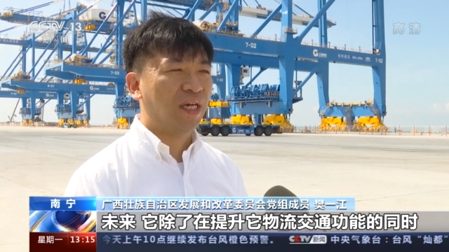 廣西壯族自治區(qū)發(fā)展和改革委員會黨組成員 樊一江:未來除了在提升物流交通功能的同時,還要打造一個貿(mào)易通道,打造一個連接?xùn)|盟的經(jīng)濟產(chǎn)業(yè)走廊。