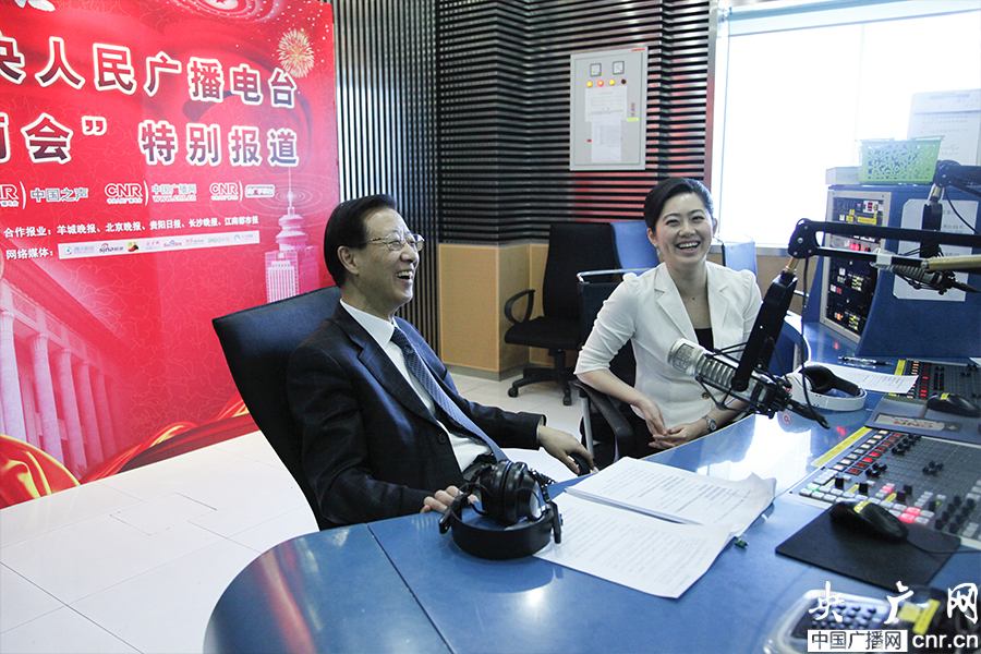 證監(jiān)會(huì)副主席姜洋(左)做客中國(guó)之聲《做客中央臺(tái)》(央廣網(wǎng)記者 趙娜娜 攝)