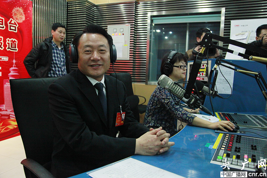 全國(guó)人大代表、安徽安慶市委書(shū)記虞愛(ài)華做客中國(guó)之聲《政務(wù)直通》(央廣網(wǎng)記者 趙娜娜 攝)