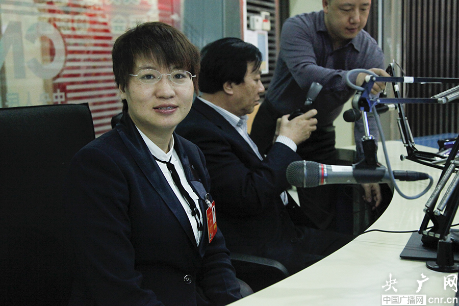 廣東農(nóng)民工代表曾香桂做客中國(guó)之聲《政務(wù)直通》(央廣網(wǎng)記者 趙娜娜 攝)