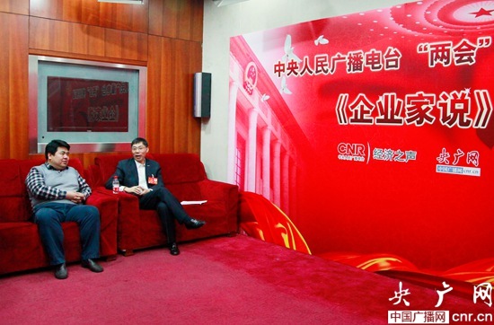 全國(guó)人大代表、浪潮集團(tuán)董事長(zhǎng)孫丕。ㄓ遥┰诮(jīng)濟(jì)之聲2014兩會(huì)高端訪談《企業(yè)家說》貴賓室。攝影 趙娜娜