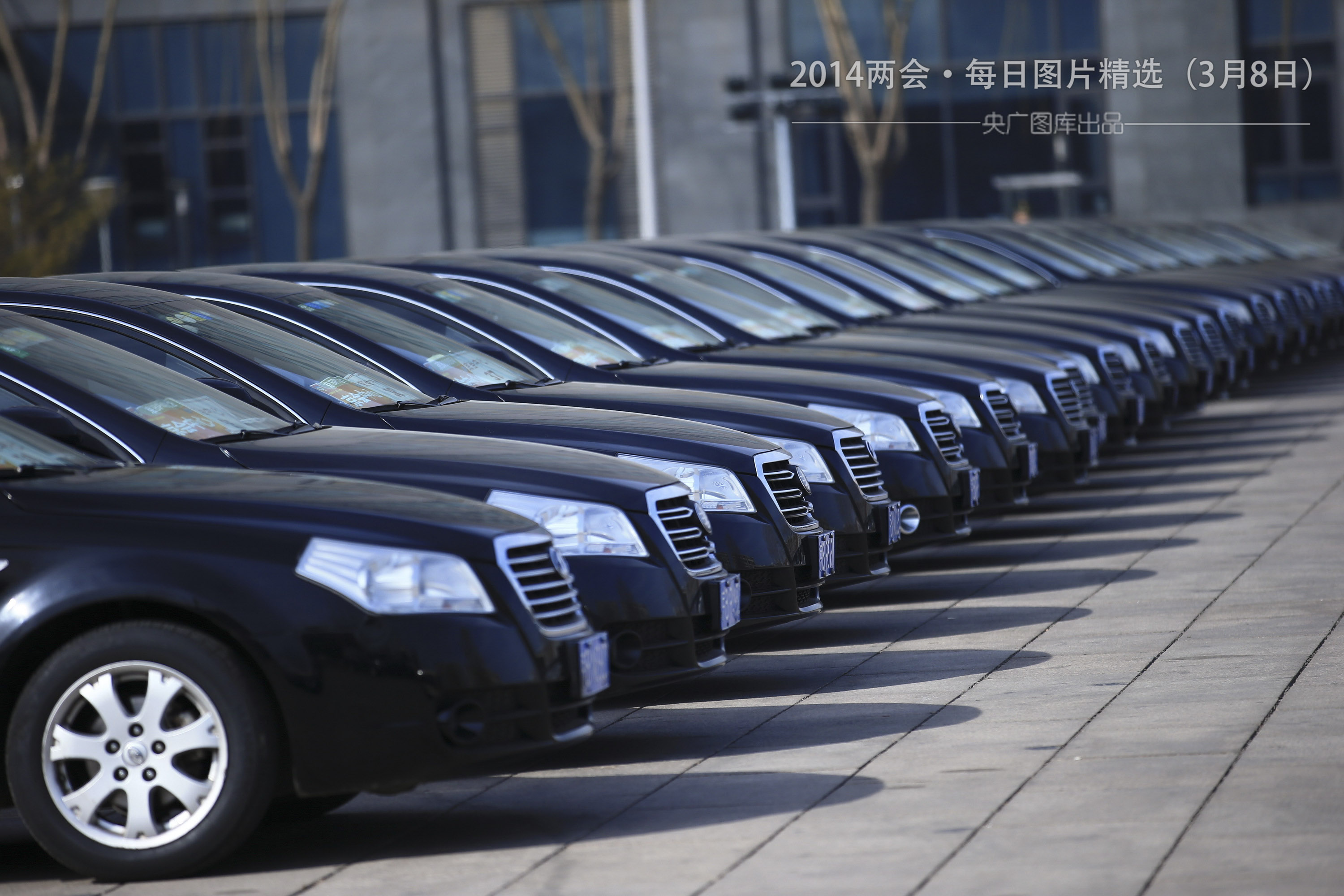 3月7日,停放整齊的兩會服務(wù)用車,整齊劃一有秩序。(圖片來源:CFP)
