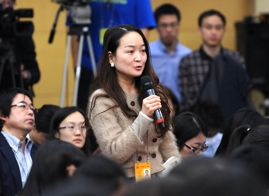 2014年3月6日上午9時,十二屆全國人大二次會議新聞中心在梅地亞中心多功能廳舉行記者會,邀請財政部部長樓繼偉、副部長張少春就“財稅體制改革和財政工作”的相關(guān)問題回答中外記者的提問。圖為新華社財經(jīng)國家周刊記者提問。新華網(wǎng)/中國政府網(wǎng) 翟子赫攝