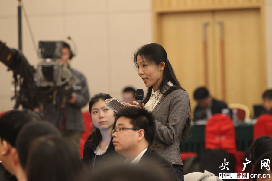 中央人民廣播電臺(tái)、央廣網(wǎng)記者張棉棉提問(wèn)(央廣網(wǎng)記者 杜虎 攝)
