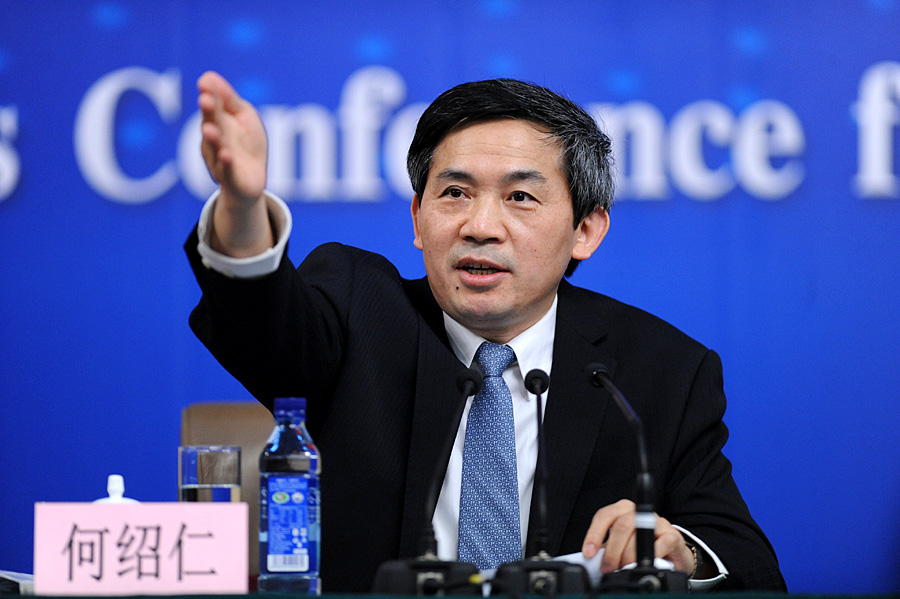 3月9日15時(shí),十二屆全國(guó)人大二次會(huì)議新聞中心在梅地亞中心多功能廳舉行記者會(huì),全國(guó)人大五位負(fù)責(zé)人將就“人大立法和監(jiān)督工作”相關(guān)問題回答中外記者提問。圖為記者會(huì)主持人何紹仁。陳競(jìng)超 攝