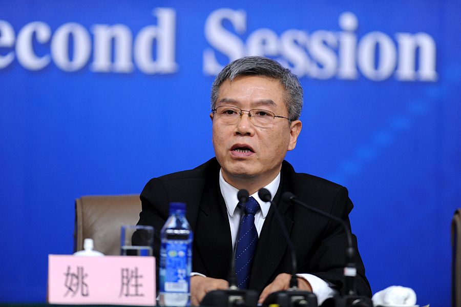3月9日15時(shí),十二屆全國人大二次會(huì)議新聞中心在梅地亞中心多功能廳舉行記者會(huì),全國人大五位負(fù)責(zé)人將就“人大立法和監(jiān)督工作”相關(guān)問題回答中外記者提問。圖為全國人大常委會(huì)預(yù)算工作委員會(huì)副主任姚勝答記者問。攝