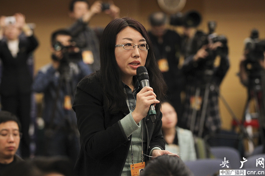 光明日?qǐng)?bào)記者提問(wèn)(央廣網(wǎng)記者 張曈 攝)