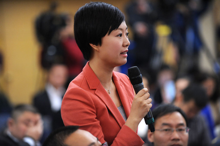 2014年3月6日上午10時30分,十二屆全國人大二次會議新聞中心在梅地亞中心多功能廳舉行記者會,邀請農(nóng)業(yè)部部長韓長賦,總經(jīng)濟(jì)師、新聞發(fā)言人畢美家就“扎實深化農(nóng)村改革,加快發(fā)展現(xiàn)代農(nóng)業(yè)”的相關(guān)問題回答中外記者的提問。圖為中央電視臺和中國網(wǎng)絡(luò)電視臺記者提問。新華網(wǎng)/中國政府網(wǎng) 翟子赫攝