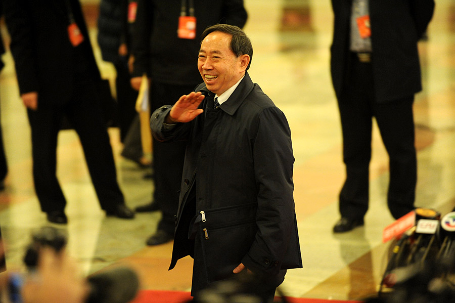 3月5日,第十二屆全國人民代表大會(huì)第二次會(huì)議在人民大會(huì)堂開幕,聽取國務(wù)院總理李克強(qiáng)作政府工作報(bào)告,審查計(jì)劃報(bào)告和預(yù)算報(bào)告。圖為教育部部長袁貴仁入場時(shí)向記者揮手。新華網(wǎng)/中國政府網(wǎng) 翟子赫 攝