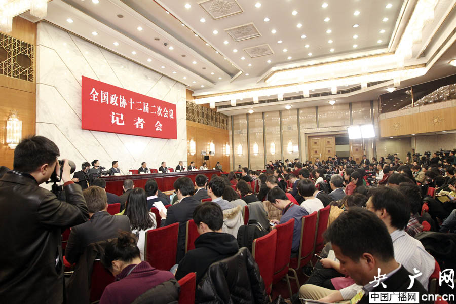 全國政協(xié)十二屆二次會(huì)議記者會(huì)現(xiàn)場(chǎng)